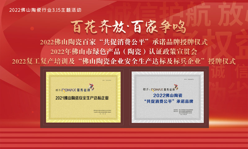荣誉时刻|恭喜罗马磁砖荣获2023年佛山陶瓷百家“放心消费承诺品牌”